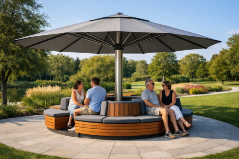 Maximale Flexibilität und freie Fläche unter dem Schirm – Der Ampelschirm (auch Freiarmschirm genannt) wird seitlich über einen Ausleger gehalten. Dadurch ist die Fläche unter dem Schirm frei von störenden Masten. Er lässt sich oft neigen und drehen, um dem Sonnenstand optimal zu folgen.