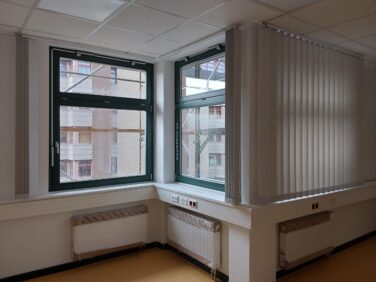 Aufmaß, Herstellung, Fertigung und Montage von ca. 250 Vertikallamellen-Anlagen zur Nutzung der Arbeitsplätze gemäß den Arbeitsschutzbestimmungen bezüglich der Blendschutzrichtlinien