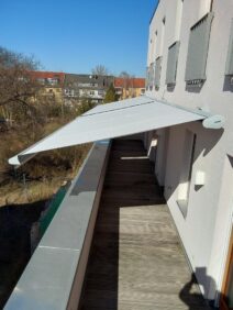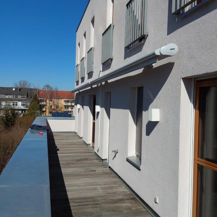 Familie G. wünschte sich einen Sonnenschutz für den exponierten umlaufenden Balkon. Die Kassetten-Markisen sollten sowohl bei hoch-, sowie bei niedrigstehender Sonne einen Sonnenschutz bieten. Des Weiteren wurde sich die Installation einer Smart-Home-Steuerung und die Bedienung über eine App gewünscht.
