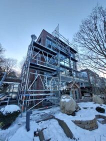 Demontage und Entsorgung der Raffstore-Anlagen. Lieferung und Installation von 30 Vorbau-Markisen mit Motor und deren Integration in die Gebäude-KNX-Steuerung.