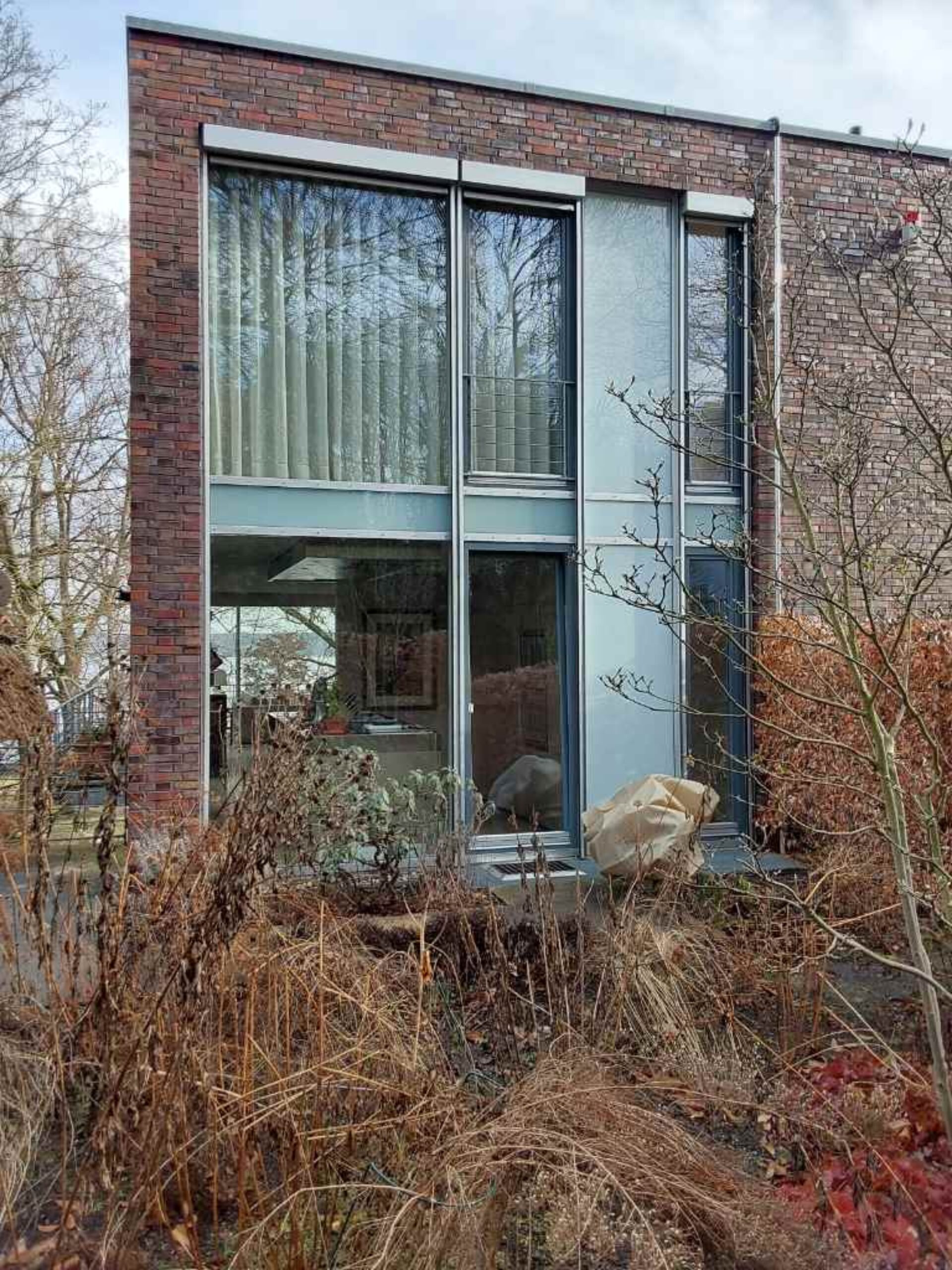 Die Familie W. wünschte sich ein Austausch der bestehenden Sonnenschutzanlagen und eine Integration der neuen Senkrechtmarkisen in die Gebäude-KNX-Steuerung. Der Kundenwunsch war außerdem einen Blick über den See zu ermöglichen, bei geschlossenen Zustand keine Einblicke von außen zu gewähren und bei geöffnetem Zustand Licht durch die fast 6,0 Meter hohe Fensterfassade ins Gebäude zu lassen.