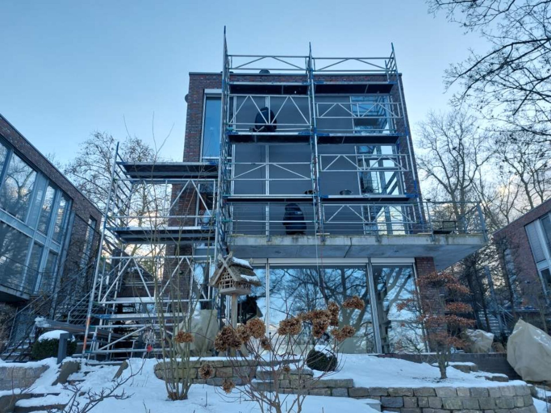 Demontage und Entsorgung der Raffstore-Anlagen. Lieferung und Installation von 30 Vorbau-Markisen mit Motor und deren Integration in die Gebäude-KNX-Steuerung.